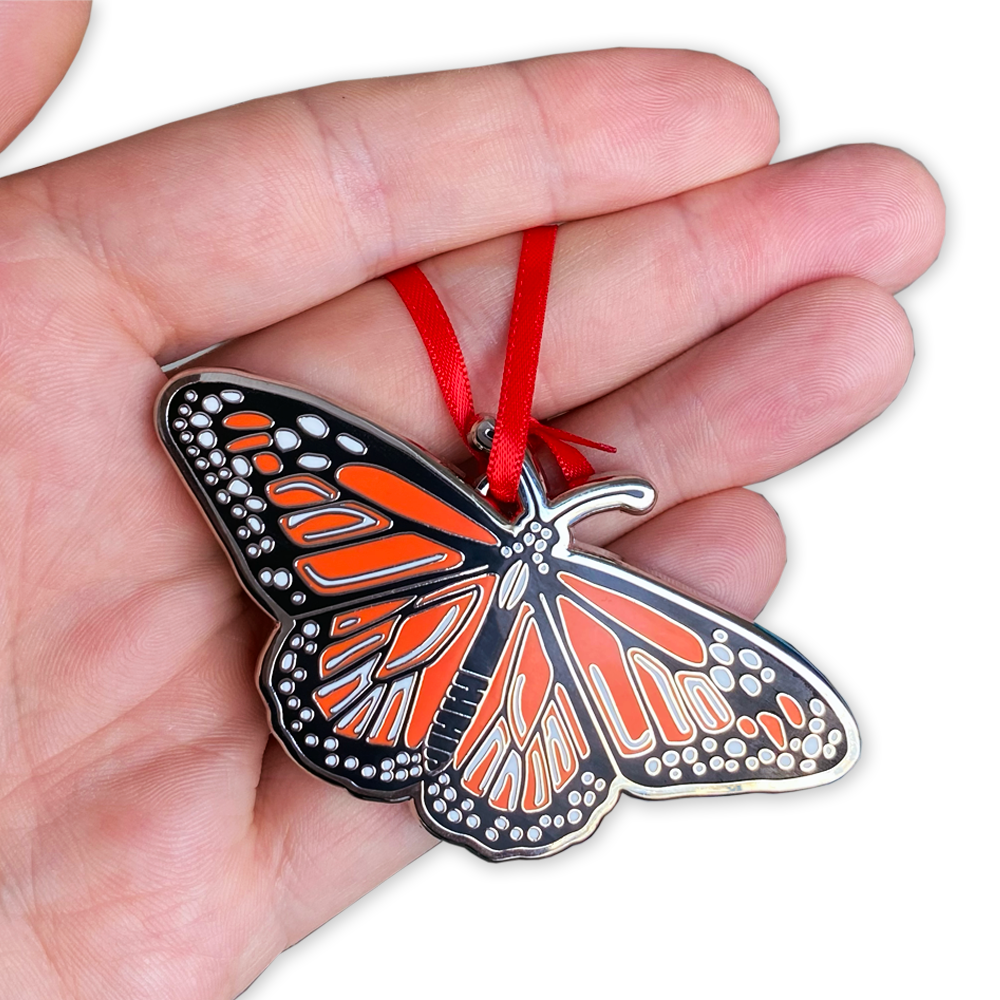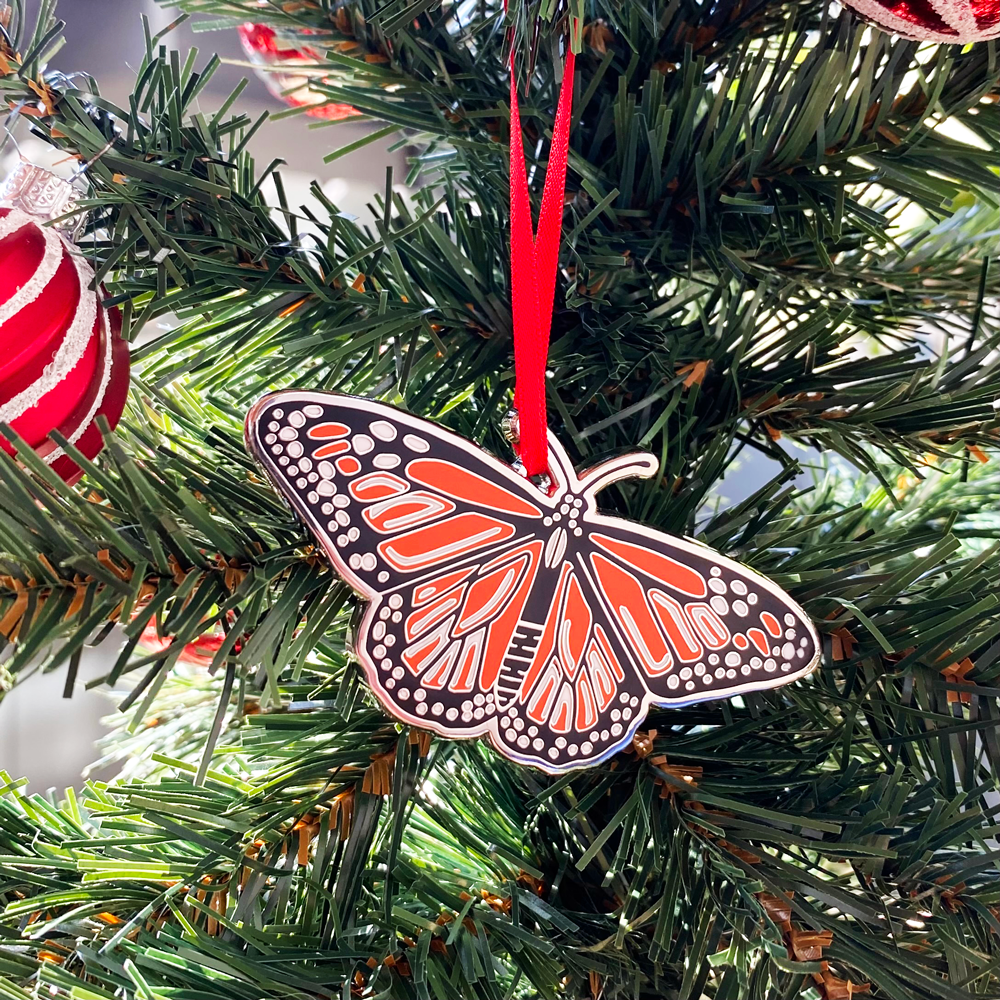 What better way to inspire hope during the holidays than to decorate your home with it? This ornament features a beautiful monarch butterfly, which due to its remarkable life cycle — from egg, to caterpillar, to chrysalis, and winged form — has come to symbolize transformation and rebirth. The monarch butterfly is endangered, threatened by herbicides and loss of habitat, and thus represents an opportunity for a transformation in how we each take action to protect the natural world! There is always hope, if we are brave enough to take action.