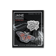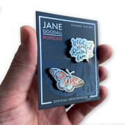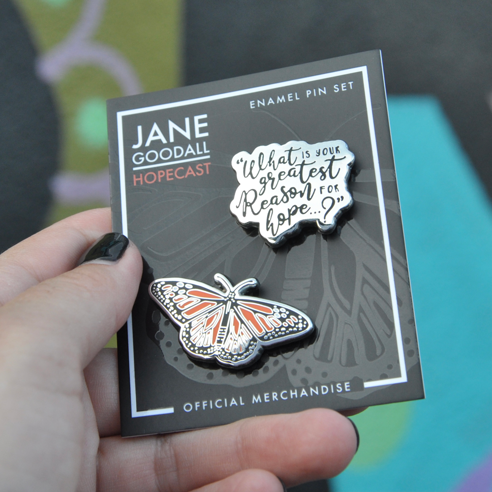 Love the Jane Goodall Hopecast? Carry a piece of it wherever you go with this pin set! Spread hope everywhere you go…