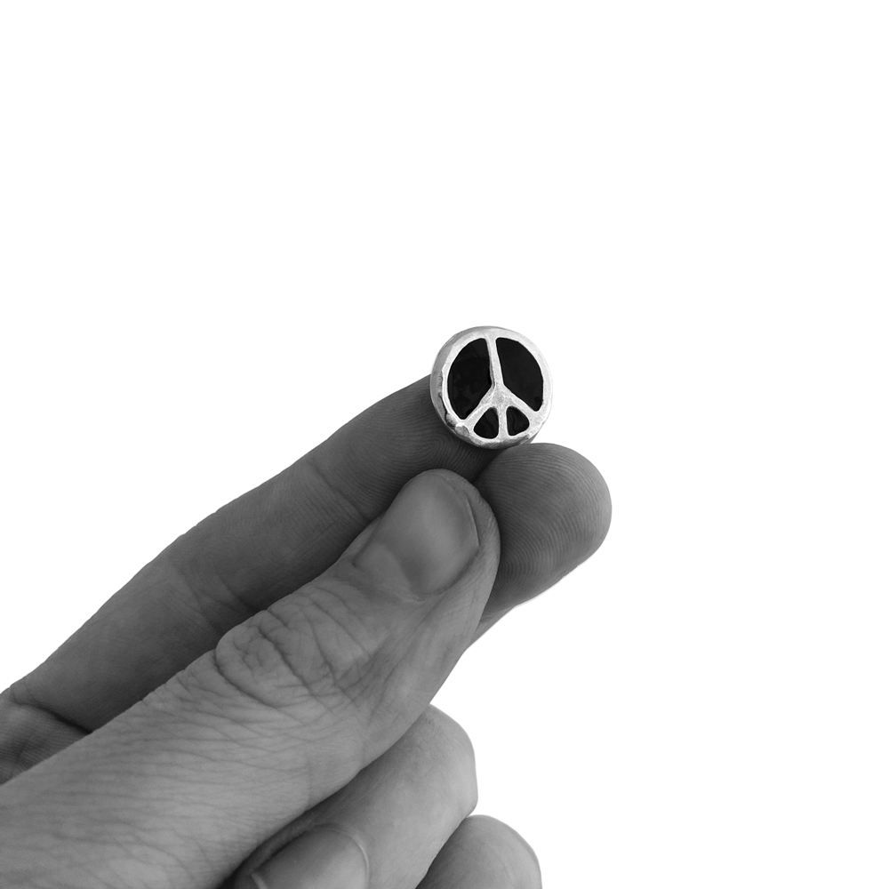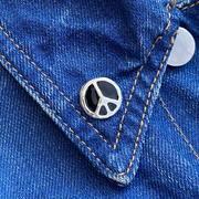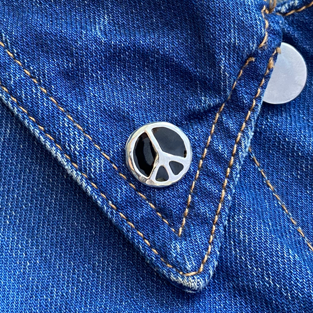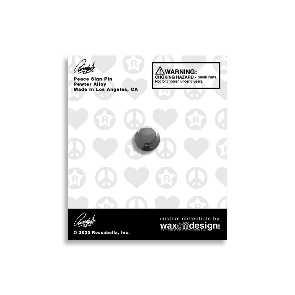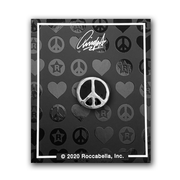This officially licensed enamel pin features Ringo Starr's signature on the back of a small, handcrafted peace sign, symbolizing the Ringo's message of Peace and Love. Made from handcrafted pewter in our Los Angeles workshop.