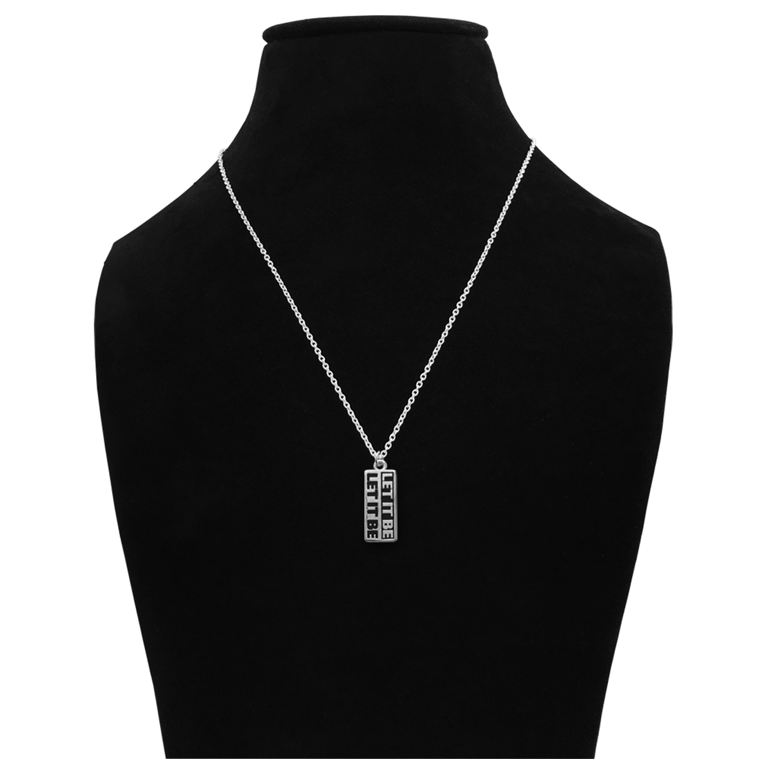 Handmade sterling silver LET IT BE ID unisex necklace with custom gift box packaging.