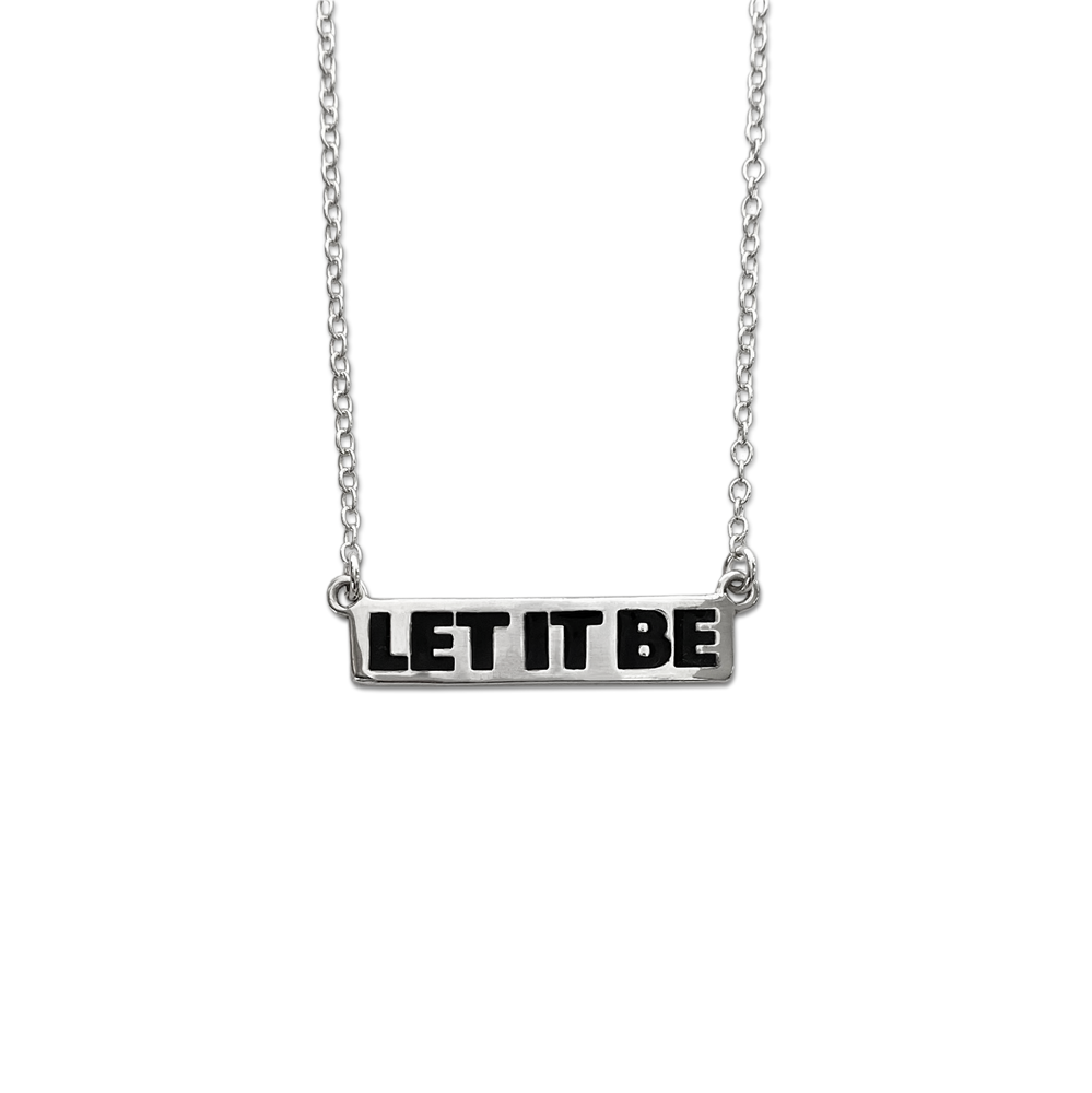 Handmade sterling silver LET IT BE necklace with custom gift box packaging.